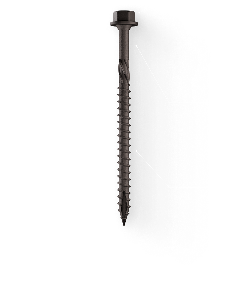 driving into hardwood. Aggressive thread offers high pull-out strength in