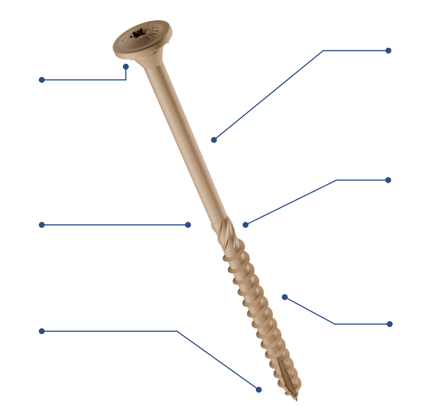 Minimizes splitting and reduces torque required to drive the screw.
